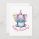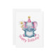 Adsible Elephant with Party Hat and Flowers Julkort