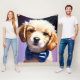 Adsible Fluffy Puppy w Cute Blue Bow Tie Fleecefilt