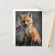 Adsible Fox Kit Holding Lavender Flowers Helg Vykort