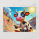Adsible Mini Black and White Cow Skateboarding Vykort