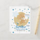 Den berömvärda pojke-födelsestatskonstruktionen med en nalle tecknad sitta på måne och stjärnor i mörk och ljusblå och gräddblå färg. Enkel att anpassa genom att ersätta namn och detaljerna med dina egna.