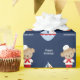 Den underhållande nautiska planen har en söt illustration av en apa med en sjömansutrustning och en ljusblå och röd segelbåt. Anpassa den med en namn eller en text som du själv väljer för en typ av design.