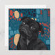 Adsible Sitta Black Pug Hund on Blue Abstrakt