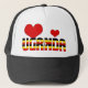 Den hedervärda Uganda Flagga hedrar den patriotiska Truckerkepsen med texten "Uganda" på hatten. Inskriptionen ges till mönster och färg från Ugandas nationella flagga. Två röda hjärtan, en stor och en liten avslutar utformningen. Hjärtarna är fullt anpassade eller kan tas bort med funktionen "Anpassa det!". Bashatt färg kompletterar utformningen mycket väl. Den här fina hatten är en underbar och unik gåva. © LänderAvVärlden