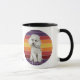 En porträtt av en berömvärd vit minister Pudel Hund är kännetecknande för mugg. Bilden placeras på en retro, lätt nedtryckt solnedgång, och skrivs ut två gånger på mugg. Ditt namn är i matchande lila-skript mellan bilder.