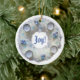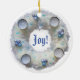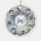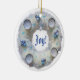 Vackert silver och blåvitling andedräkt med fyra voriga ljus. Joy! är skriven i mitten i blått för att matcha dekorationerna. Ord kan ändras om du föredrar ett annat. Det finns i två storlekar och i flera former. Om du väljer en annan form förhandsgranskar du den innan du beställer den för att kontrollera att du tycker om designändringen.