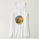 This 1960s inspired Adventure Life design features a sunset beach scene with tie dye text, painted hippie camper, surfboards and guitar. The only thing missing is you! Made for beach bums, surfers, travelers, dreamers, and anyone who feels most alive chasing the next horizon. Show off your love for coastal life and vintage vibes with this groovy scoop neck tank top.