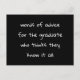 Skapa ditt eget roliga studenten ord-kort till din studentfest firande. Fråga gästerna till skriva ord om råd till din favoritgrad. Svart och vit design. "Ord av råd till student som tror att de vet allt". Underbart minneskort för studenten.