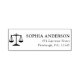 Denna självbläckande returadressstämpel i marinblått har en ikon med rättvisans våg på vänster sida med namn och adress prydligt placerade på höger sida. Layouten är professionell och balanserad och utformad för juridisk korrespondens och daglig post från juristkontor.