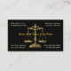 Ett affärskort som visar den rättsliga symbol som används i juridik. Perfekt för advokatbyråer och advokater. Detta kort har en svart bakgrund med rättvisans skalor.