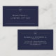 Professionell mörk marinblå och vit modern geometrisk formad advokat vid juridik, konsult, frilansförfattare, lärare eller företagsledare som monogrammat enkelt klassrättsligt affärskort.