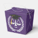 studentfesten i kreativ juridik gynnar gåvor med roliga skikt av rättvisa, med en svart och guld studentmössa om lilans bakgrund för nya advokater.