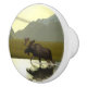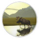 Någonstans i insida i Alaska, kanske i brokrosregionen, går en älg (Alces alces) genom en damm vid en solig fall eftermiddag. När årets slut närmar sig har ljuset tänts på den typiska gulaktiga tonen som får allt att verka lite spröt. Sol faller mellan bergen i bakgrunden.