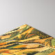En andlig syn på ett stort jordbrukslandskap. Scenen domineras av ett lappverk av fält i olika skuggor av brunt, guld och grönt, som skapar ett mesmeriserande geometriskt mönster. Fält är noggrant uppdelat i rader av träd och rullningsvägar, vilket ökar den övergripande synskärpan.