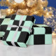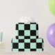 Flygblå och svart kontrollerad kvadratisk mönster.