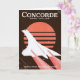 Concorde 1970's semesterbiljettaffisch skriver ut. flygplan som flyger framför sol.