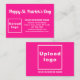 Grattis St. Patrick's Day! En till helgdag att fira i mars och för att också marknadsföra ditt företag eller främja ditt varumärke. Grönt är alltid färgen för denna helgdag men prova också andra färger. Rosa färg på tillbehörskort som du kan anpassa för att sätta ditt företags varumärke och med St. Patrick's Day hälsning. Detta kan vara den färg som passar ditt företags färgschema. Anpassa det och använd det för att hälsa dina kunder eller klienter på St. Patrick's Day och som marknadsmaterial för att marknadsföra ditt företag eller främja ditt varumärke. Du kan också använda det som tillbehör eller förpackningsmaterial för din produkt. Anpassningsbart tillbehörskort som du kan använda för att bygga varumärkesmedvetenhet. För att anpassa detta tillbehörskort, ladda upp din företagslogotyp, skriv ditt företagsnamn, adress, telefonnummer, e-post och webbplats eller din företags sociala mediesida. Kontrollera utseendet på fram- och baksidan efter att du har laddat upp logotypen och skrivit texterna. Om utseendet är tilltalande för dig kan du lägga din beställning nu. Om du behöver ändra storlek och flytta logotypen och texterna för att passa på detta tillbehörskort eller på den storlek du väljer, vänligen ändra i designverktyget