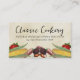 Grönt vegetabiliskt affärskort med tomat, maj, morot och betor på mycket mörk brunt underlag. Underbart affärskort för vegetariska eller vegankockar, kockar, kokar, matlagning, catering eller restaurang eller andra livsmedels- eller kulinariska företag.