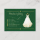 Anpassade bröllop anpassar den formella bäran och skräddarsyr affärskortet. Snygg emerald grönt och guld. Om du behöver hjälp med redigering, meddela mig och jag kommer att vara lycklig för att hjälpa till.