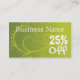 Affärskort för butiksmallar för diskonteringskupong. Klicka på "Anpassa" om du vill ha mer kontroll över text storlekt och text färg samt teckensnittsalternativ. Affärskortets storleka kuponger/rabattkort är mer kostnadseffektiva än storleka diskonteringskort för vykort. Kuponkorten gör det enklare för dina kunder att bära i en plånbok eller väska, och den färgstarka designen kommer säkert att framträda.