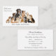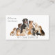 Ett djuromsorgt affärskort. Perfekt för en hundpromenad, båt, hund eller hunddagvård. På vit bakgrund är vattenfärgen bilder i elva, inklusive en bull hund, spaniel, pommern, beagle, labrador, dachshund och corgi, hudade tillsammans. Anpassa genom att lägga till din affärs- och kontaktinformation på framsidan och baksidan.