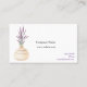 Affärskort med en handmålad vattenfärgslavendel i ett vas för att främja ditt Essential Oils-företag.