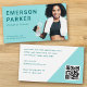 Personlig tränare eller tränare med träningsladdar affärskort med fotot på framsidan tillsammans med namn, titel och en anpassningsbar slogan eller annan text. Lägg till kontaktinformation och annan information på baksidan och anpassa QR-koden. Bakgrund- och teckensnittsformat färg kan anpassas och storleken på fotot kan ändras med verktyg.