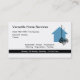 Hemtjänster - affärskort med modern design som innehåller en blöt- och hussymbol, smart textområde som du kan anpassa med information om din tjänst. Bästa affärskort för teman som rör städning i hemmet, hushållshållare eller flytta- och förpackningsassistans.