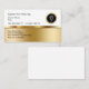 Klassmedicinska affärskort med smart design som innehåller ett hörseltema, en symbol för örat och guld färgadens bakgrundsdesign inslag att ge är ett elegantens uppskalningsutseende. Designad för ett kontor i doktor, en professionell för hälso- och sjukvård eller för något företag som har samband med hörsel, hörsel av aids eller ett Ear Doktor.