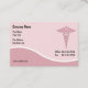 Medicinska affärskort för kvinnors hälsa i modern utformning, inklusive en rosa caduceus-symbol och färg samordnad bakgrund tillsammans med en enkel utformning. affärskort för perfekt till alla som är doktor, sjuksköterska, RN eller läkarmottagning tittar för affärskort till Läkare. Finns i affärskortet lagrar som är större än storleka för extra visuell påverkan.