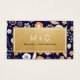 Affärskort för Monogram Navy Blue Guld Flowers Visitkort
