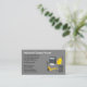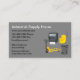 Moderna affärskort för industrileveranser i en enkel online med en bild av en lastpall, sopor tunna, en janitorial moppingerhink och en papper badrumsbehållare.