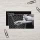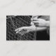 Affärskort med framfoto av händer som håller fisknät. Anpassade. Svart baksida med info.