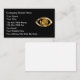 Affärskort för säkerhet som du kan anpassa med en klassdesign som innehåller en metallisk symbol som öga och en textlayout som du kan anpassa. Designad för teman som rör tillsatta lagar, hemsäkerhet, datorsäkerhet eller privatdetektiver.
