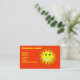 Detta skarpa och djärva affärskort är lämpligt för många olika branscher, särskilt för catering till barn och semesterfirare. Den ljusa gulten sol visas på affärskortets höger och mitten. Den fetstilta gulten är anpassade för att du ska kunna lägga till din egen affärsinformation och ta bort fält som inte är relevant för ditt företag. Om du vill ha ytterligare anpassning klickar du bara på knappen "anpassa".