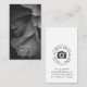 Modern minimalistisk njutning, svart Blommigt. Enkel text på baksidan med logotyp.