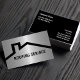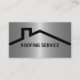 Affärskort med enkel takbeläggning med ett hus tak, tillsammans med text som du enkelt kan anpassa online och coola för metallisk tittar bakgrund som skrivs ut på framsidan. En enkel men kraftfull utformning med gott om utrymme för en logotyp om du vill lägga till din. Designad för ett takföretag, en takofer eller en omformningsleverantör.
