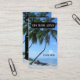 Affärskort med handflatan träd vid stranden. Bakgrundsområdena för svart text kan dras eller tas bort om du inte behöver dem. Ett vackert affärskort för en resebyrå.