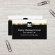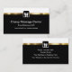 Klassy Massage Therapist, modern visitkortsmall i en redigerbar utformning på två sidor som innehåller en guld-tittar design för inslag som tillför en elegans med svart och vit bakgrund och händer emblem för massage.