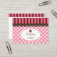 Rosa och brun godis färgad rand, gingham, chokladkrukor och kammusslor ge denna cupkaka affärskort retro stil. Använda det här affärskortet för en bageri, butik, butik, catering osv. Anpassa informationen till kostym efter behov, lägg till eller ta bort text osv. Formgivningarna kommer från originalteckningen.