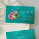 Kokosnöt med halm, tropiska löv och hibiscus blommor på en vatten-liknande blå tealbakgrund skapar ett retro-fetstilt affärskort från stranden pub. — Fyll i dina uppgifter på framsidan och baksidan!