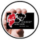 affärskort i Sten-bandet med fet röd, svart och vit design som innehåller coola två sidformar kan du anpassa texten och ändra bakgrunden till färg på båda sidor och inkludera bilder av en rockning på gitarr. Designad för ett rock and roll-band, Indie sten-band eller musiker.