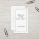 Den här enkla, anpassade och enkla affärskortet har en treradig gräns. Den skulle kunna användas av en professionell som advokat, advokat, notarie eller paralegal. Namn, yrke och kontaktuppgifter kan vara personlig.