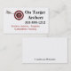 Affärskortet Arkeriförråd och lärdomar med pilen i mitten av målet. Anpassa med din egen företagsinformation.