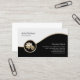 Den här automatiska reparationen av affärskortet har svarta och vita segment som avgränsas av en vågigt guld-remsa. En elegant guld-ikon med bilväxlar ljuger på den nedre lämnat sidan av konstruktionen, som i allmänhet är lämplig för företag eller yrken med anknytning till transport, transport, gods, gods, lastbil, lastbil, bil, bil, mekanik, bilreparationsteman.