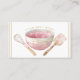 Elegantens vattenfärgsillustration av affärskortet för personlig kock eller catering med visk, sked och skål. Lägg till ditt namn i en söt böjd text ovanför skålen och din titel inuti skålen. Ett unikt stil.