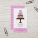 affärskort för lodrät i öga med finare-tårtgrafik för bagerier eller cateringar. Förformaterad text på framsidan och baksidan är allt redo för dig att redigera med dina egna uppgifter. System för rosa, brunt och blått färg.