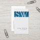 I det här affärskortet med enkel professionell visas ditt namn och din titel längst ned på framsidan mot en benvit bakgrund. Brev i monogrammet visas överst, över ett blått grunge remsor som blandas in i kortets bakgrund. Din huvudsakliga kontaktinformation visas på baksidan. Denna utformning är i allmänhet lämplig för de flesta företag eller yrken som måste få stor effekt med en enkel minimalistisk utformning. Anpassa kortet omedelbart med ditt namn och din information.
