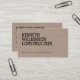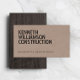 Ditt namn eller ditt företag namn visas i ett fet, stencil-stil-teckensnitt på en mörk brunt spånskiktbakgrund för den här konstruktionen eller byggarens visitkortsmall. Aestetiken förs över på kortets baksida. © 1201AM-KREATIV