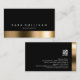 Detta slående professionell bokhållare med fetstilt svart affärskort har en elegant faux/Phophic guld reflexion rand på nedre gräns. Ditt namn och din titel visas precis ovanför det mönstrade gräns, över en svart jet-bakgrund. Samma mönstrade tema visas på kortets baksida, förutom att rand finns på högerna gräns. Din logotyp och kontaktinformation visas på kortets svarta del. Affärskortets utformning ger ett slående första intryck och är en perfekt för storslagna, aktiva, mode, stil, chic, professionell, modern, sofistikerad, abstrakt, administration, finans, förvaltning, redovisning, affärsverksamhet, konsultfrågor.